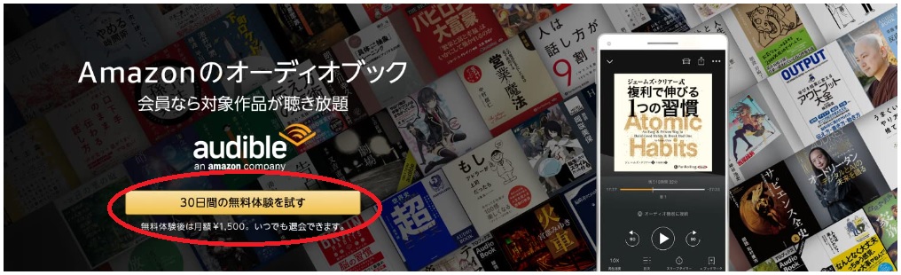Audibleは月額1,500円の会員になれば、約12万作品が聴き放題になります。また、聴き放題対象外の作品も定価の30%割引で購入できる特典があります。