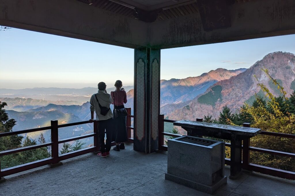 山の上からの景色が一望できる遥拝殿は、妙法ケ岳の山頂に鎮座する三峯神社の奥宮を拝する場所です。奥宮は山道を往復しないと行けない場所ですが、遥拝殿からもそのパワーを感じることができます。