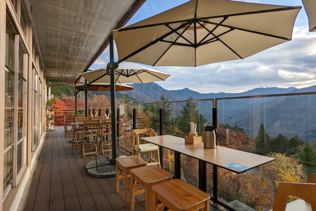 本格的な手打ち蕎麦が楽しめるお店で、三峯神社の麓に位置しています。「中津川いもでんがく」や「やまめ塩焼き」などのオリジナルグルメが味わえます。お土産ショップも併設されています。